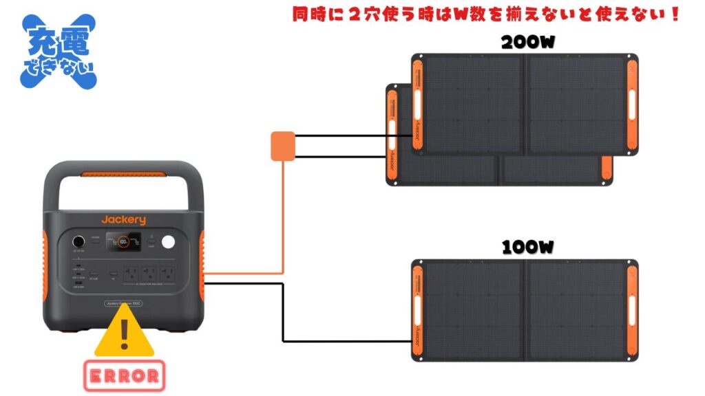 片方の差し込み口で100W、もう片方で200Wで使う(NG)