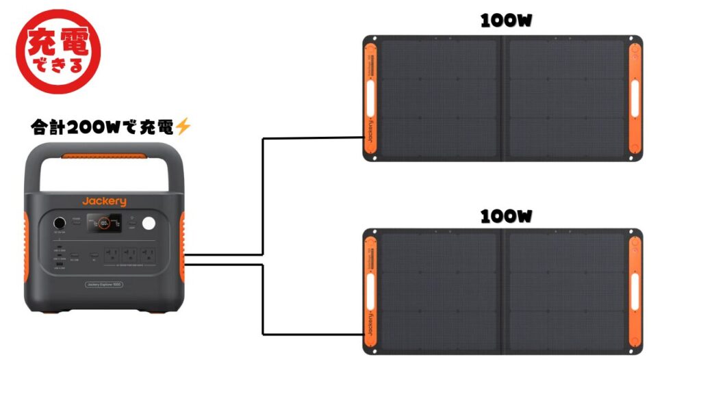まず、Jackeryからは100Wパネル・200Wパネルの両方が販売されています。