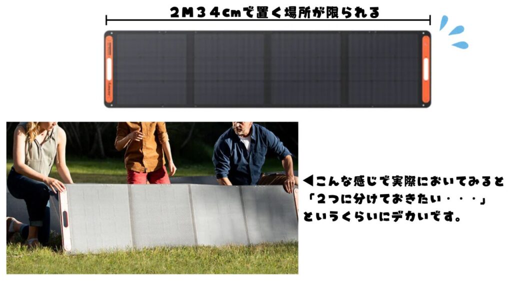 200Wパネルはかなり横幅が大きく、設置スペースを取るため、ベランダや限られたスペースには不向き。