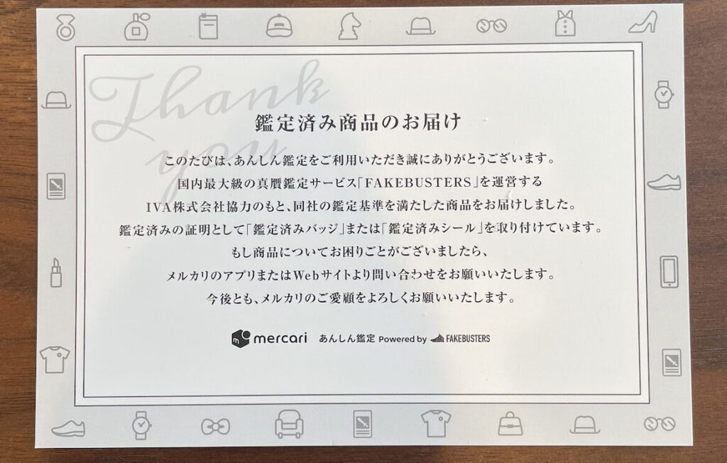 あんしん鑑定で本物だと判断された時はこの手紙が添えられるようです。