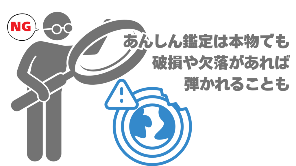 この場合、鑑定の「基準未満」と判断され購入者に返品されます。