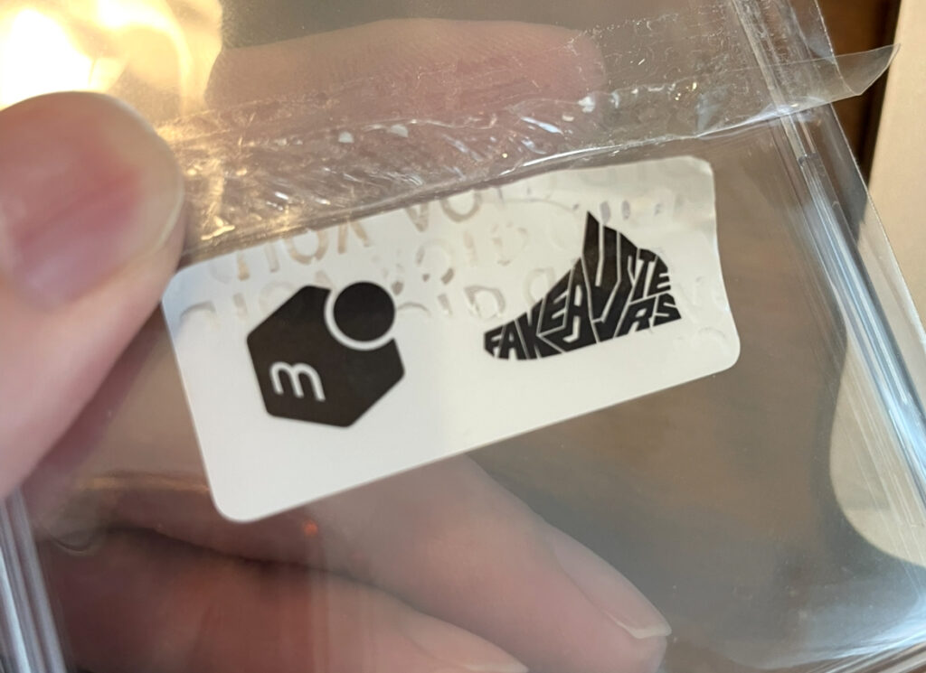 ちなみに商品を保護しているビニールには、独自のシールがはられており、1度でも剥がすと剥がしたことがわかる仕様になっています⇩