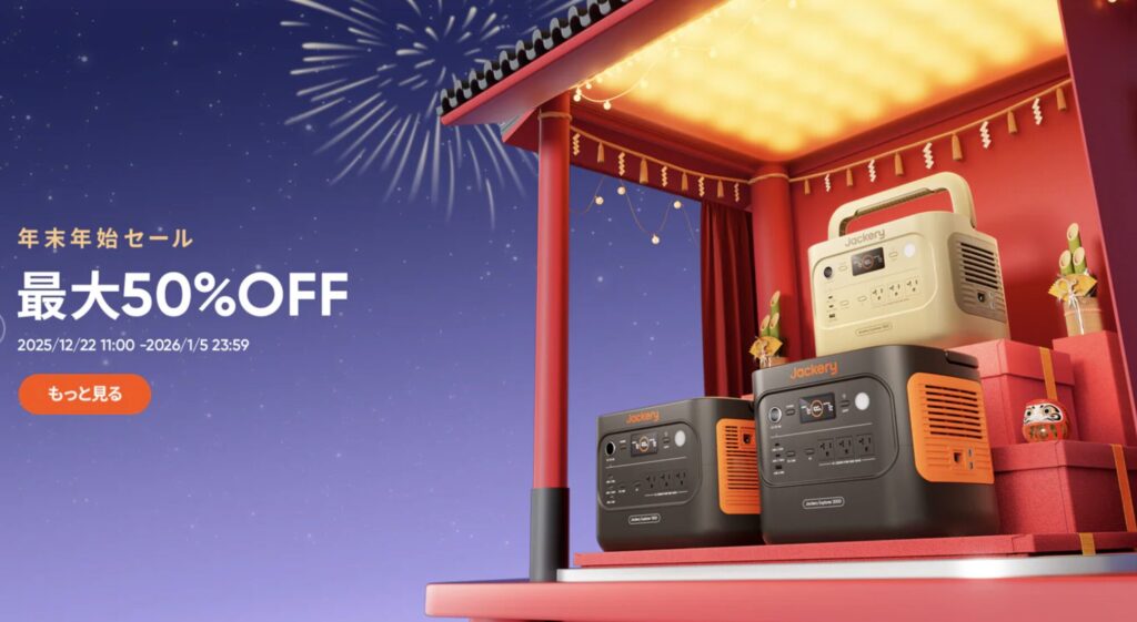 Jackeryのポータブル電源を検討しているなら、年末・年始の期間限定セールは見逃せないタイミング。