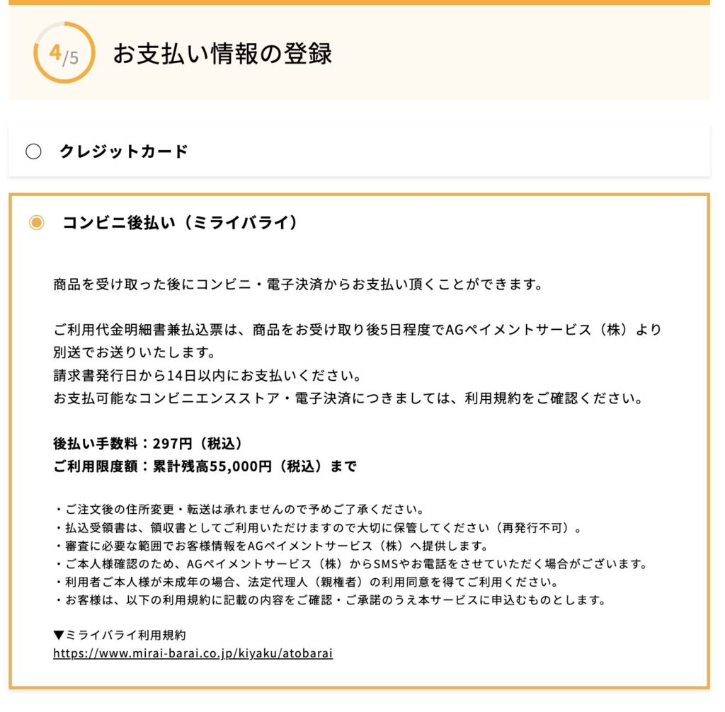 デリピックスは「ミライバライ」という後払いに対応していて、商品到着後に請求書が送られてくる仕組みになっています。
