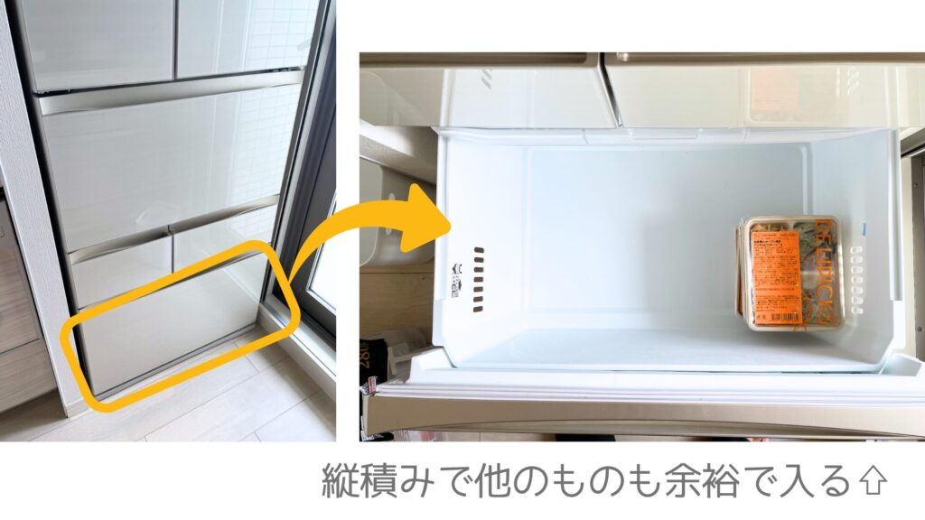 実際に大きい冷凍庫と小さい冷凍庫に入れた時の様子を写真で撮りました⇩