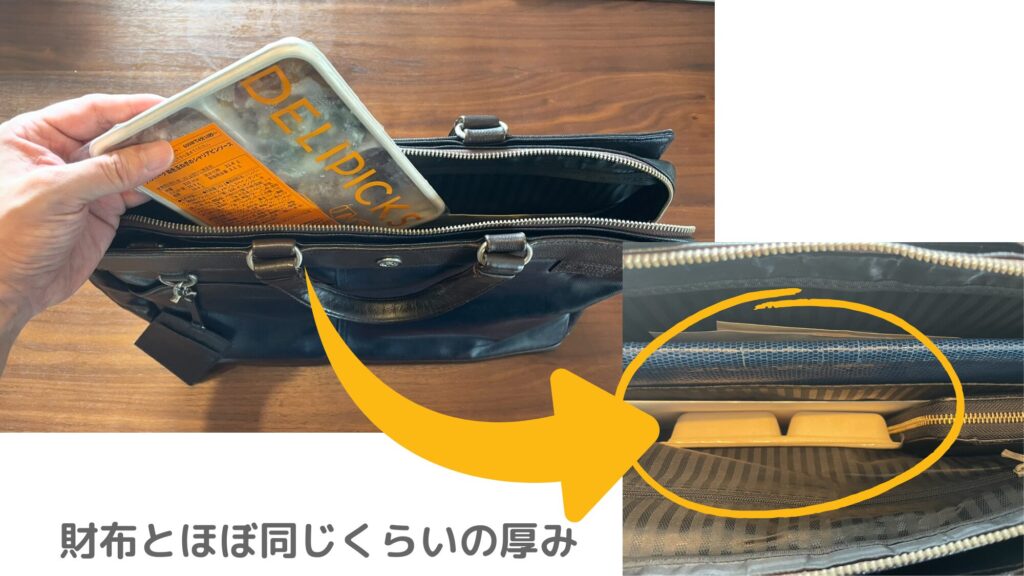 冷凍庫、カバンのちょっとした隙間にもスッと収まりるので「大きくて入らない!」ということはまずありません。