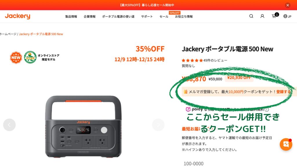 安く買うためにいろんなサイトやページを見てしまいがちですが、jackeryのポータブル電源はみるべきページが決まってます。