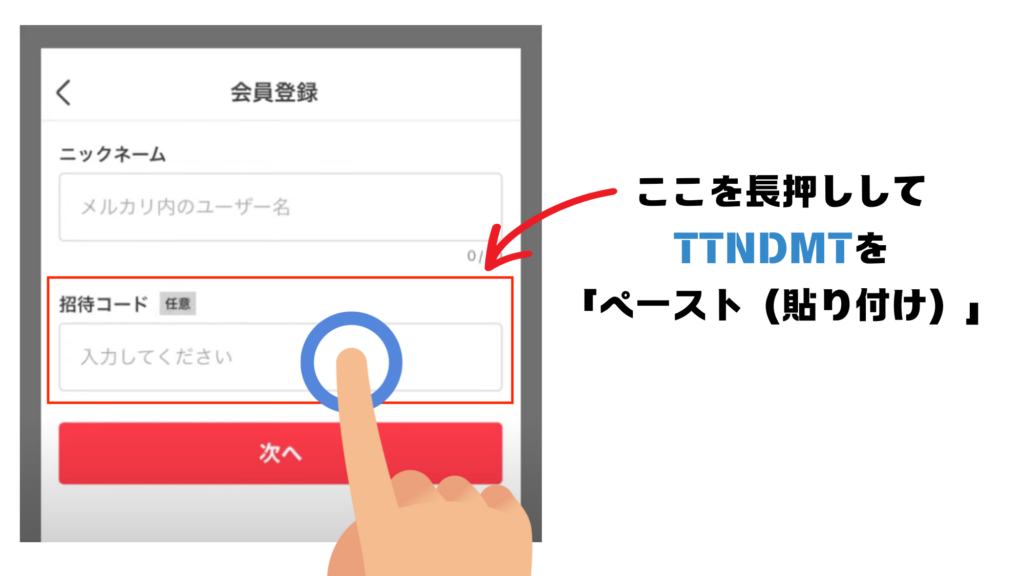 招待コードは、「一番最初に会員登録をする画面」でしか入力できません