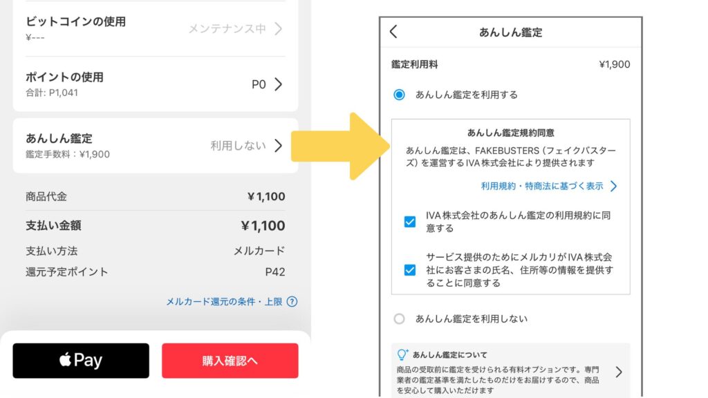 メルカリであんしん鑑定を使いたいのに、購入画面で設定できないんだけど…