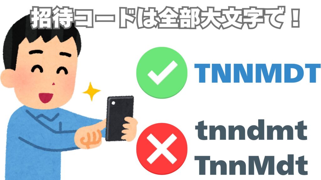 招待コードは全部大文字。小文字入力が混ざるとポイントはもらえません