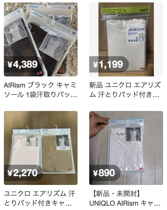 ですが、安心してください。実はメルカリで「ユニクロ 汗取り キャミソール」と検索して状態を「新品・未使用」に絞り込んでみると、袋に入ったままの新品や、タグ付きの未使用品が大量に出品されているんです。
