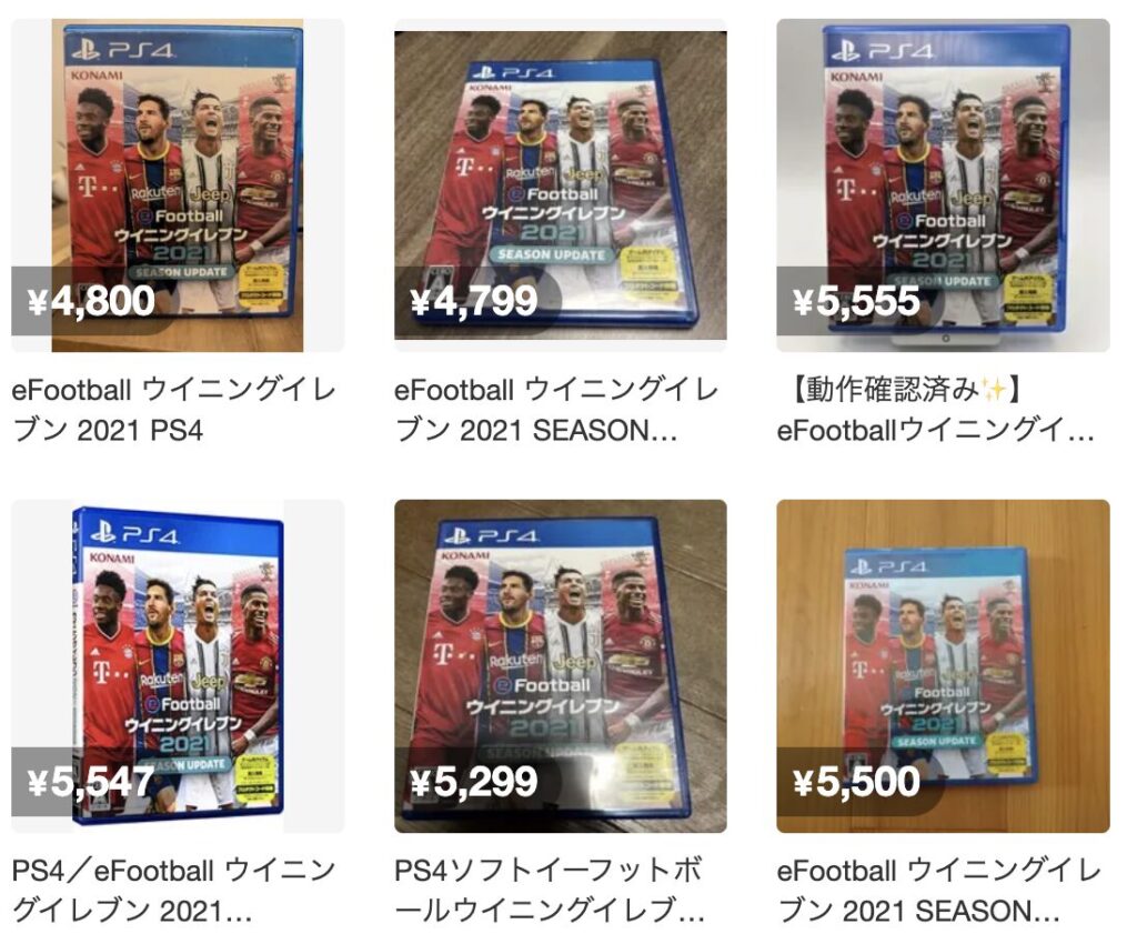 メルカリで「ウイイレ 2021 PS4」と検索してみると、クリアして遊ばなくなった一般ユーザーからの出品が常時多数見つかります。
